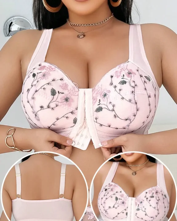 Floral Lace Front-Buckle Wireless Bra – Breathable Comfortable Lingerie Top for Daily Wear