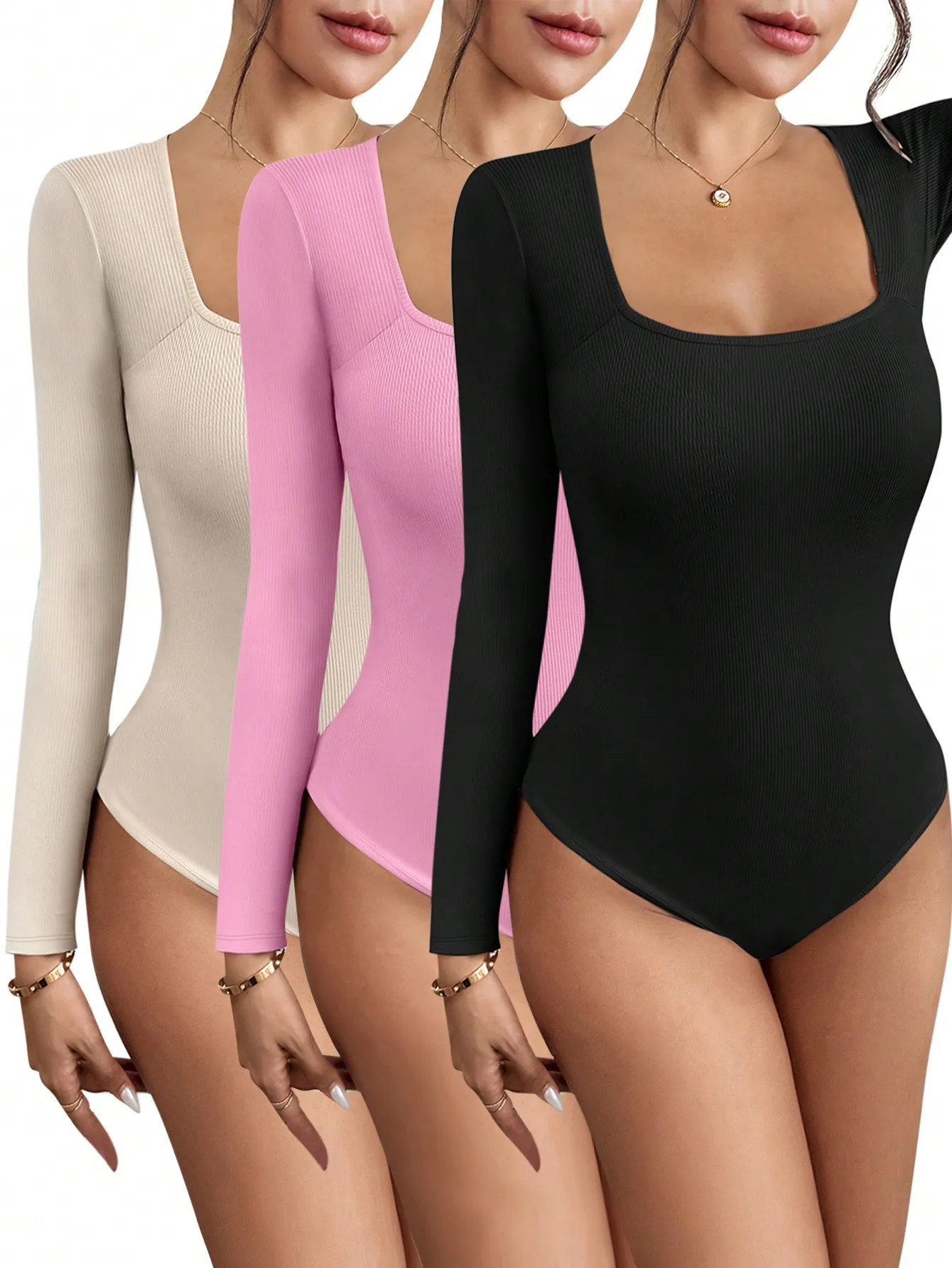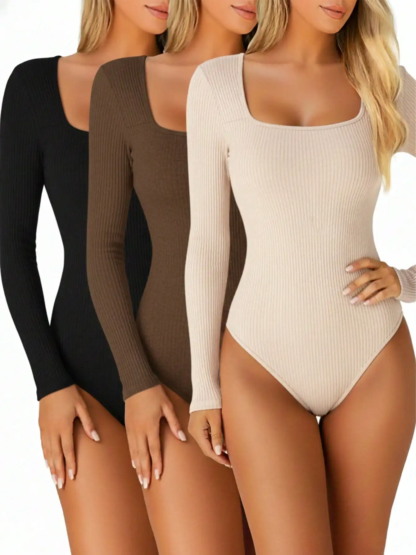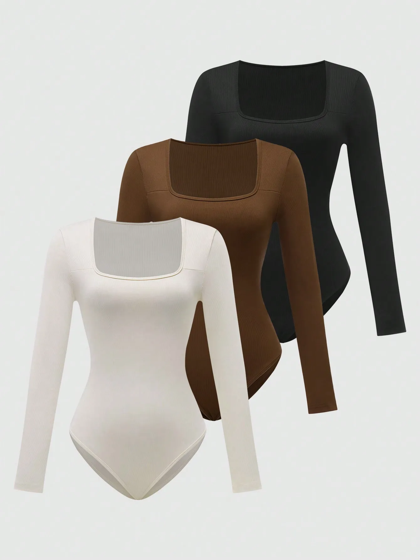 BWQ Summer & Fall Square Collar Bodysuit β Long Sleeve Tight Fit for Inner or Outer Wear, 3 Colors
