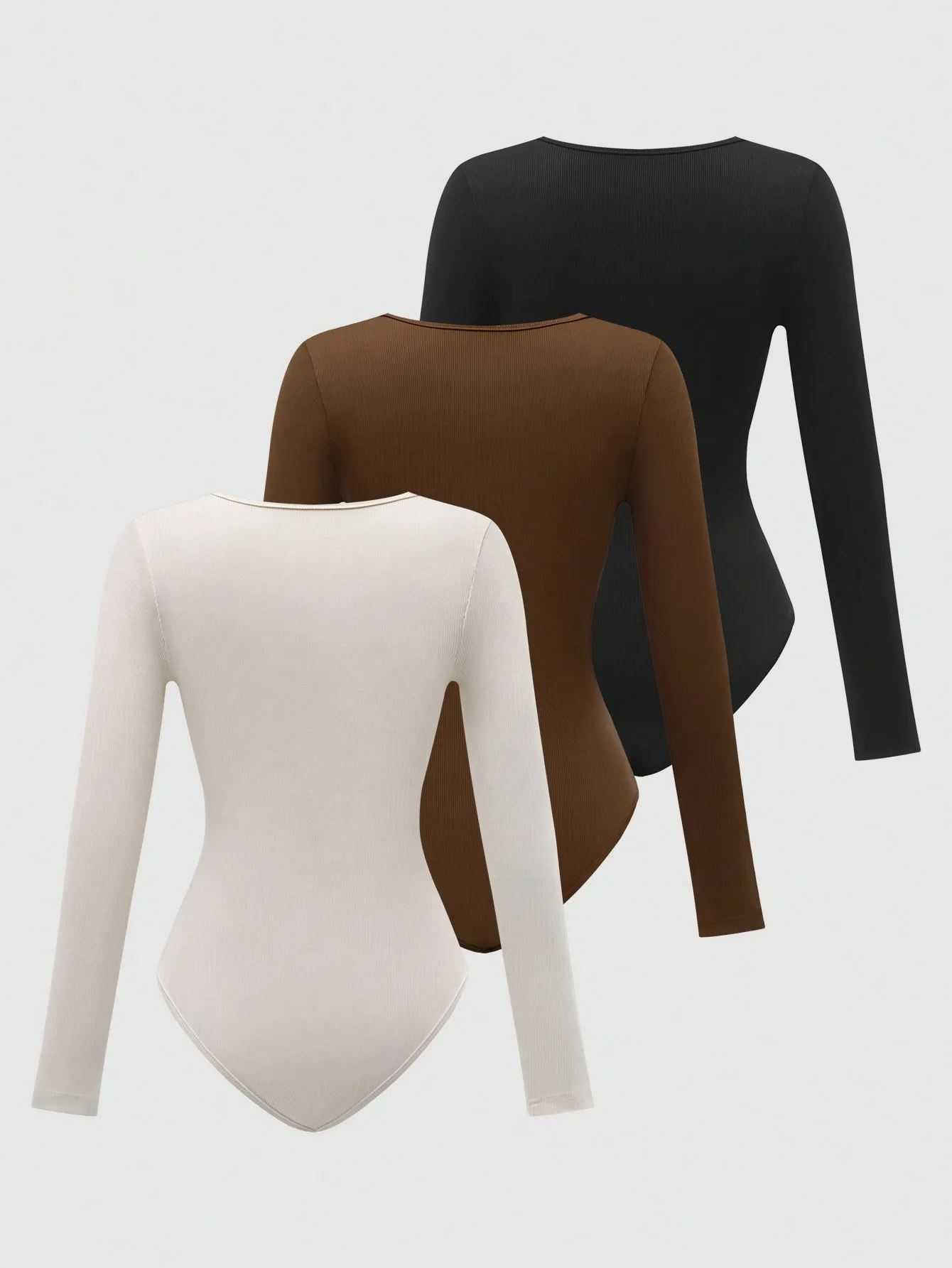 This stylish long-sleeve bodysuit features a square collar and a form-fitting design, perfect for layering or wearing on its own. Available in three versatile colorsβBlack, Apricot, and Brownβit’s ideal for summer and fall outfits.